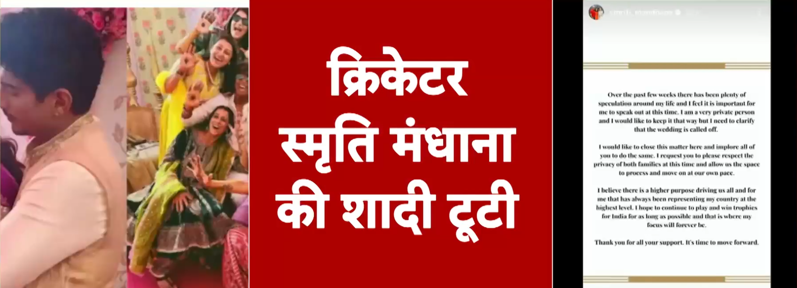 अपने संदेश में स्मृति ने लिखा कि वह बहुत प्राइवेट इंसान हैं और निजी रिश्तों को हमेशा कैमरे और मीडिया की पहुंच से दूर रखती हैं, लेकिन बातें जितनी फैल रहीं थीं, उतना ही जरूरी हो गया था कि सच्चाई सीधे उन्हीं की तरफ से कही जाए। उनकी आवाज़ में दुख साफ झलक रहा था ये सिर्फ शादी का टूटना नहीं था, बल्कि दो परिवारों का सपना और दो इंसानों की उम्मीदें भी बीच में ही टूट गई थीं।