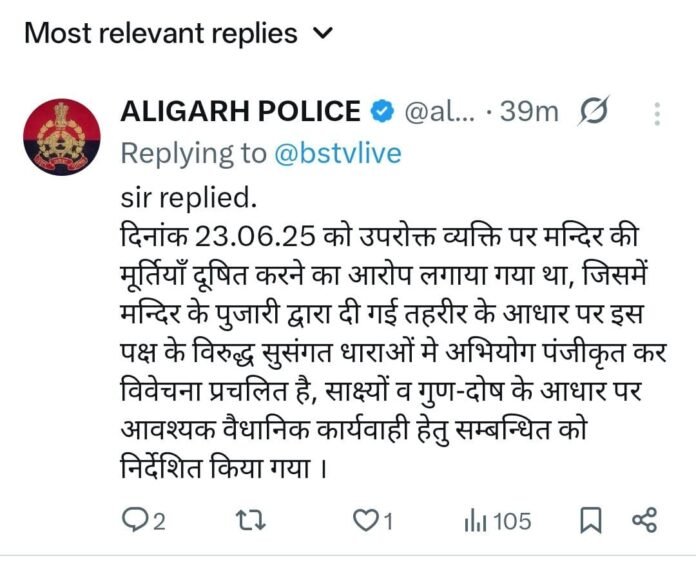 अलीगढ़ से आई एक चौंकाने वाली घटना ने सामाजिक सौहार्द पर गंभीर सवाल खड़े कर दिए हैं। जिले के एक शनि मंदिर में माथे पर तिलक लगाने वाले राजू जाटव को न केवल भीड़ की हिंसा का सामना करना पड़ा, बल्कि अब उसी के खिलाफ एफआईआर दर्ज कर दी गई है। राजू पर आरोप लगाया गया है कि उसने मंदिर की मूर्ति को दूषित किया। इस संबंध में मंदिर के पुजारी की तहरीर पर पुलिस ने मामला दर्ज किया है, जिससे पीड़ित पक्ष और दलित समाज में आक्रोश फैल गया है।